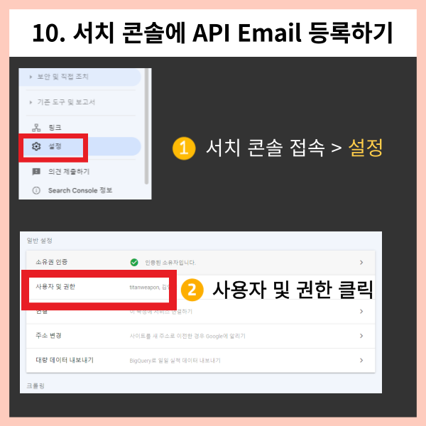 이렇게 Email 값을 가져오셨으면 이제 서치 콘솔에 등록해주시면 되는데요!