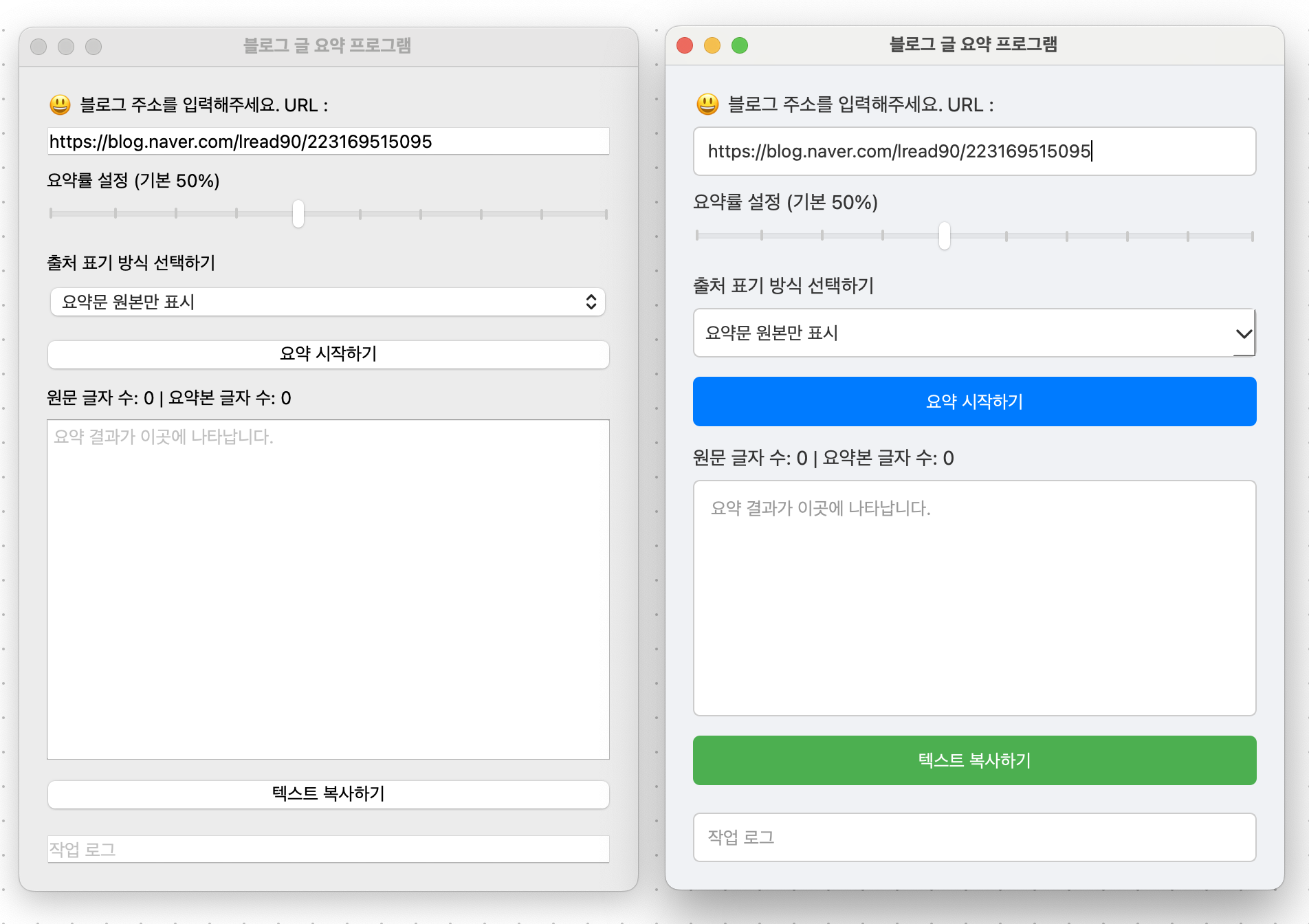self.char_count_label = QLabel("원문 글자 수: 0 | 요약본 글자 수: 0")