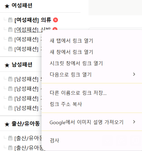 해당 메뉴에 마우스 가져가서 > 오른쪽 마우스 클릭하면 > '링크 주소 복사'가 나옵니다. 이 링크를 프로그램 입력창에 넣으면 작동됩니다.