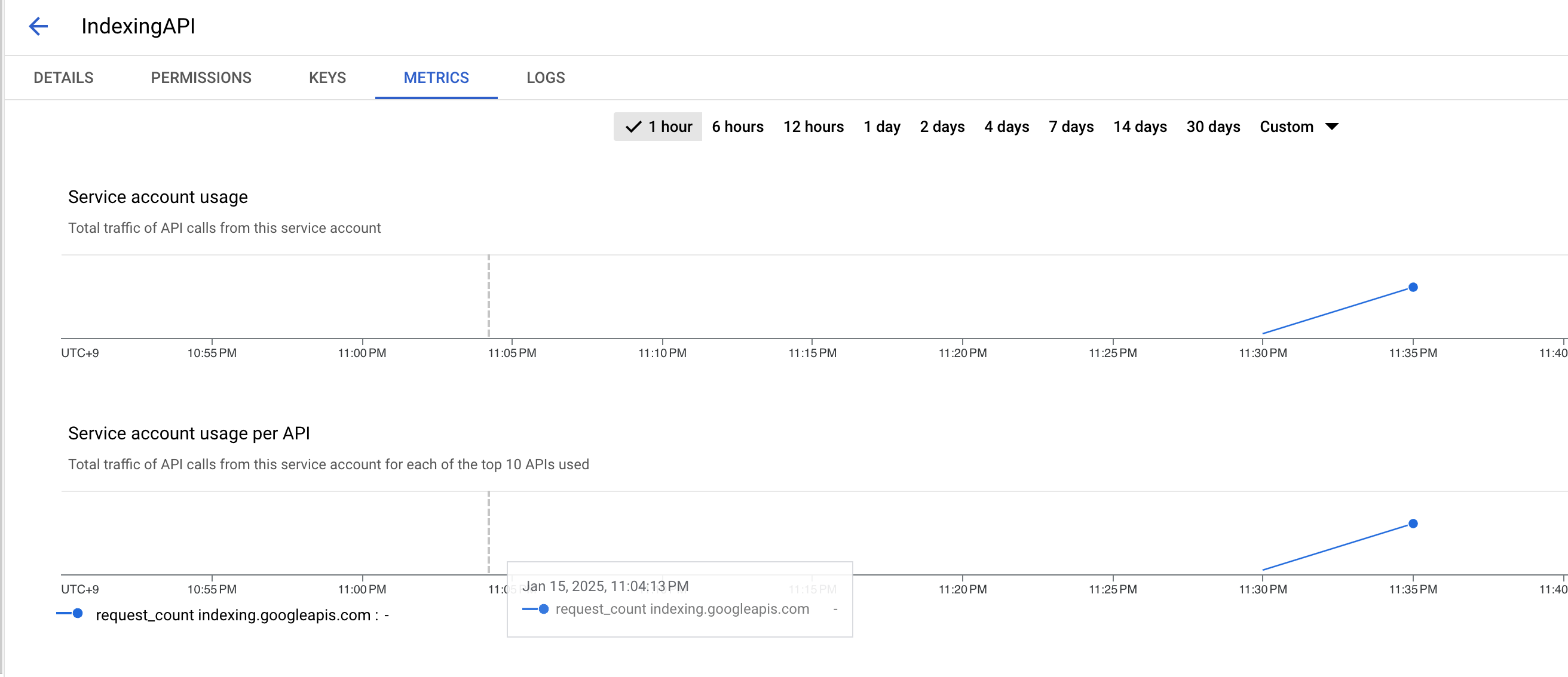 요청해보고 내 Service Account의 Metrics 들어와보니 1개 요청이 잘 되었다고 함