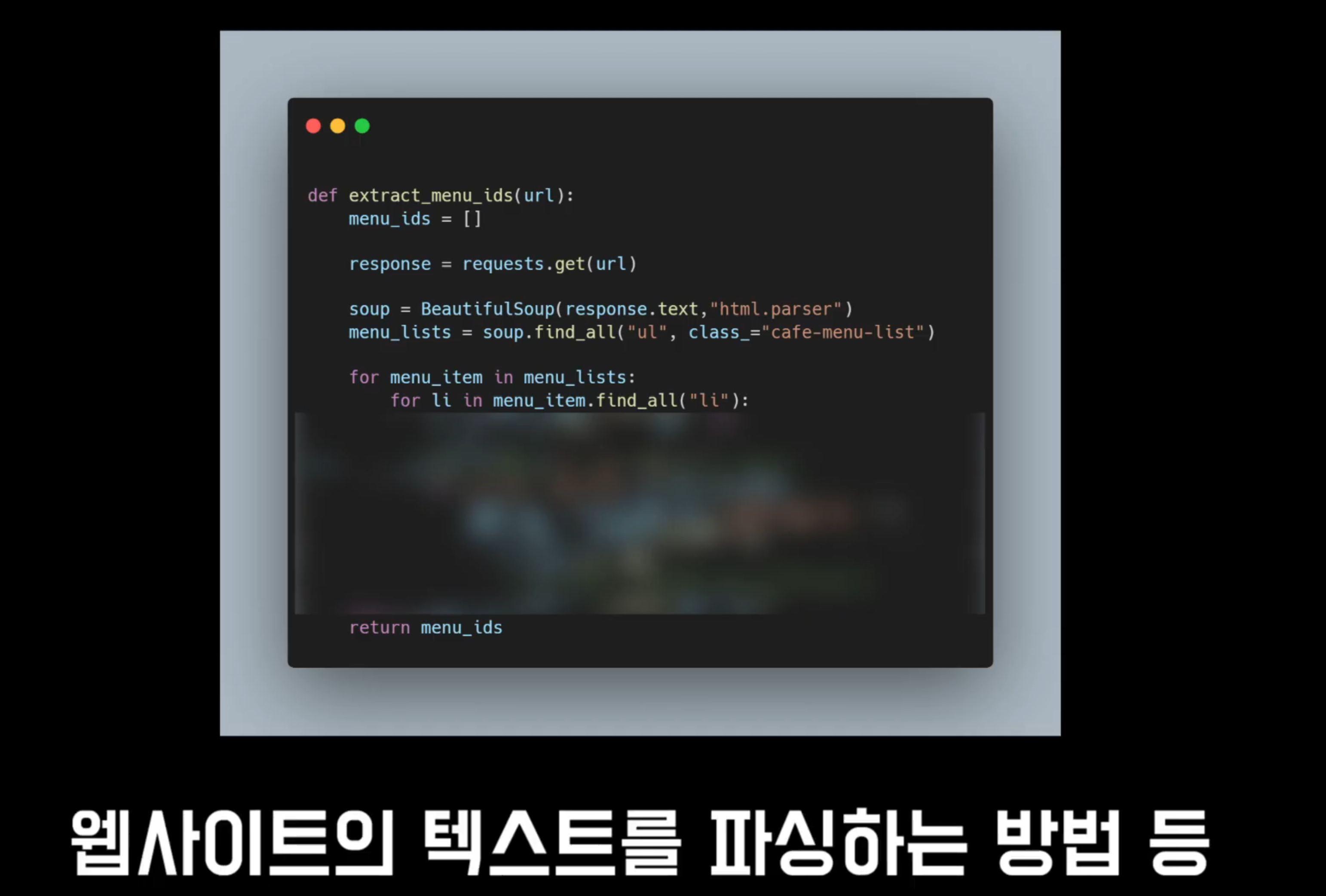그리고 리퀘스트로 받아온 웹사이트의 HTML 텍스트를 파싱하는 방법 등 이번 강의를 들으시고 나면 리퀘스트 모듈을 다루는 능력이 크게 향상되실 겁니다.