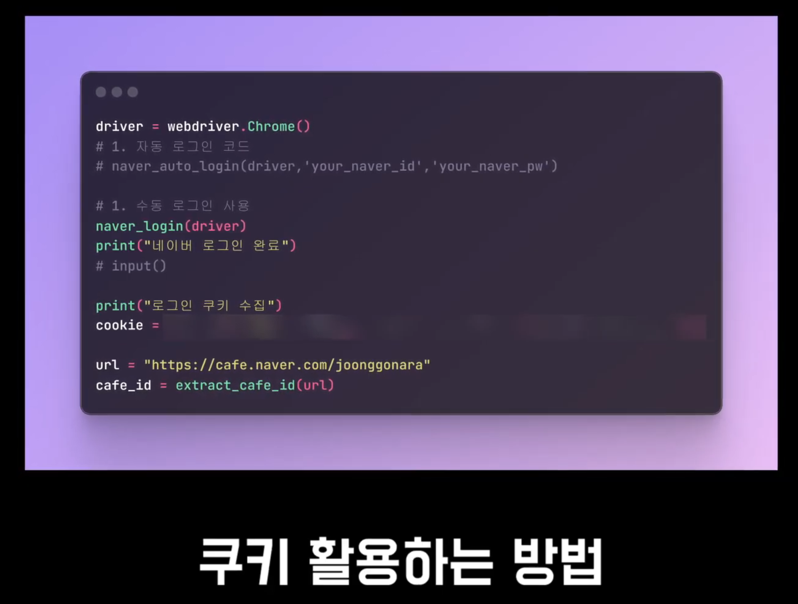 이전에 보셨던 2022년 카페 DB 추출 강의와는 다르게, 셀레니움이란 도구를 활용해서 네이버 계정을 추출합니다. 코드가 훨씬 더 간략해져서 리퀘스트 모듈에 대한 기본적인 사용 방법 강의도 제공되고요.